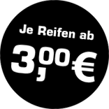 Reifenmontage PKW Stahlfelge bis 17 Zoll (je Rad) Alufelge bis 17 Zoll (je Rad) | 12,00 € 14,50 € |